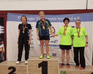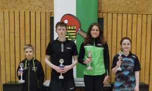 In der Saison 2023/24 machten unsere Nachwuchstalente erneut mit zahlreichen starken Resultaten auf sich aufmerksam. Bei den Kreis- und Bezirksmeisterschaften sammelten sie viele Podestplätze und sicherten sich dabei unter anderem fünf bzw. sechs Goldmedaillen. Besonders beeindruckend verlief das Jahr für Rebecca Heinicke in der Altersklasse der Mädchen 11. Sie gewann die Landesmeisterschaften des Sächsischen Tischtennis-Verbands (STTV), entschied die STTV-Punktwertung für sich und erreichte bei der Landesrangliste einen hervorragenden zweiten Platz. Auch Florentine Heinicke durfte sich über eine besondere Auszeichnung freuen: Sie wurde in das sächsische Auswahlteam für den Deutschlandpokal der Mädchen 13 berufen, bei dem die Landesverbände aus ganz Deutschland gegeneinander antreten. Ein weiteres sportliches Highlight setzte Ina Fließbach bei den Deutschen Meisterschaften der Seniorinnen als sie sich im Einzel und im Mixed jeweils die Bronzemedaille erkämpfte.